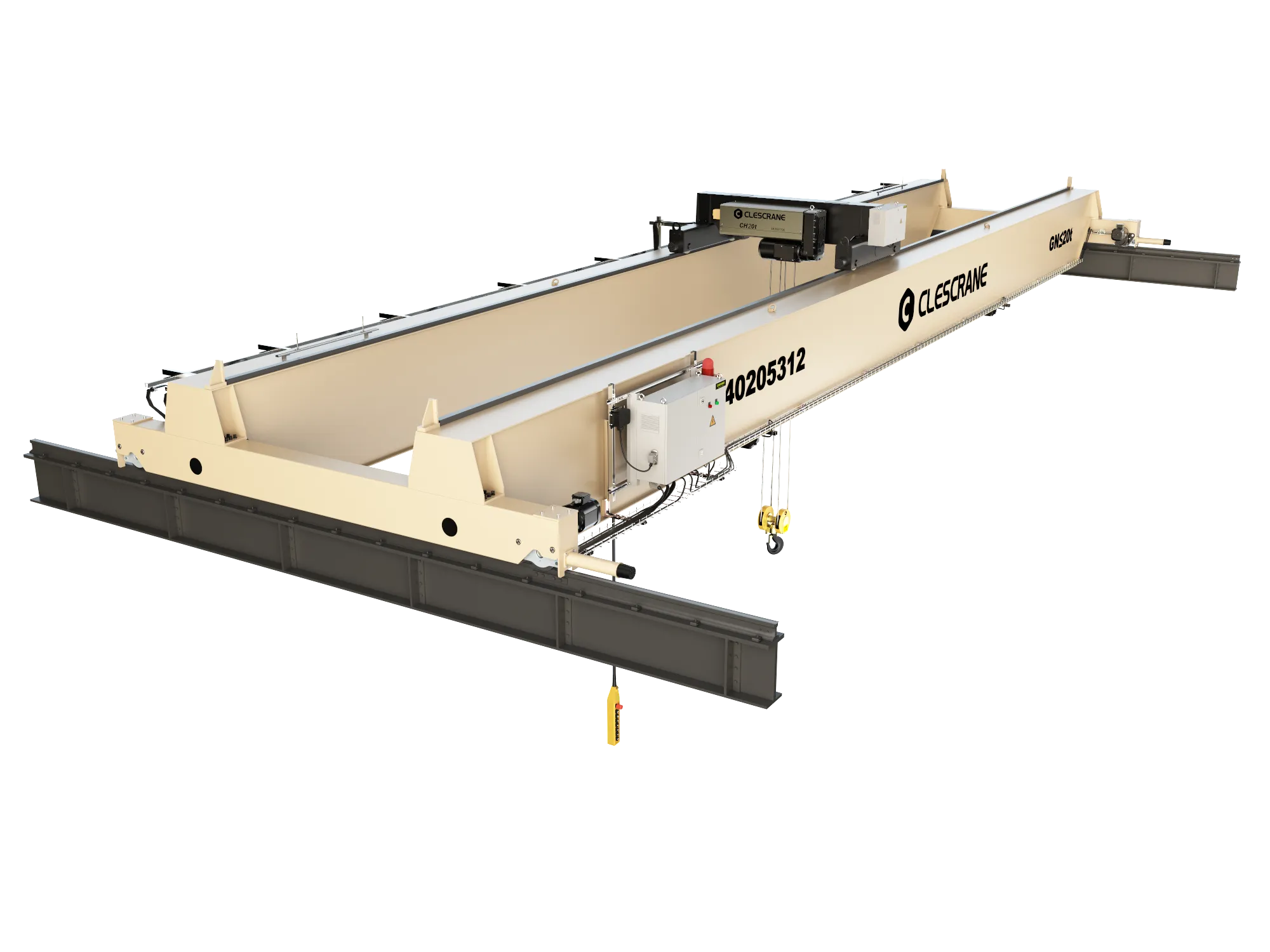 Clescrane ofrece un grúa viajera, con dos polipastos de cable,un SWL es 50t y otro SWL es 25t, levantando grandes moldes. Para ayudar a completar esta ardua tarea de procesamiento. Esta grúa puede operar dos polipastos en la grúa al mismo tiempo, e incluso puede usarlos al mismo tiempo en función de la forma y el tamaño de la carga a transportar. Durante la operación en serie, el polipasto se mueve en paralelo en la dirección del objetivo a la misma velocidad. Incluso la carga de cada gancho no es igual, la sincronización de elevación es efectiva. Esta función se basa en la ubicación conocida de los dos ganchos. La velocidad de elevación común de los ganchos está limitada en función de la velocidad de elevación más lenta.