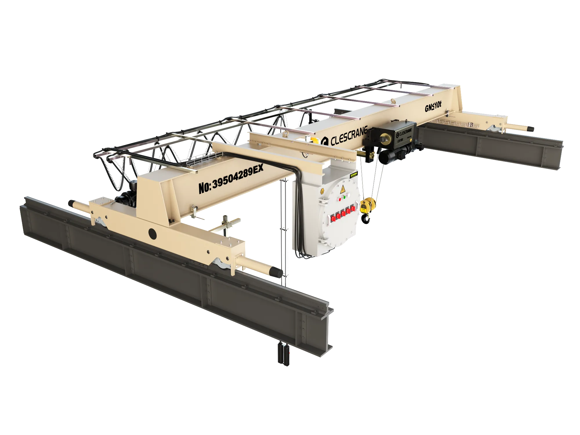 EX-CHS puentes grúas de anti-explosión están diseñadas para cumplir con las zonas peligrosas 1 y 2 de la norma europea ATEX 2014/34/EU. Las grúas y componentes cumplen con las normas europeas de anti-explosión EN ISO 80079 y EN 60079. El rango de capacidad de elevación de EX-CHS de 1000 kg a 2000kg.