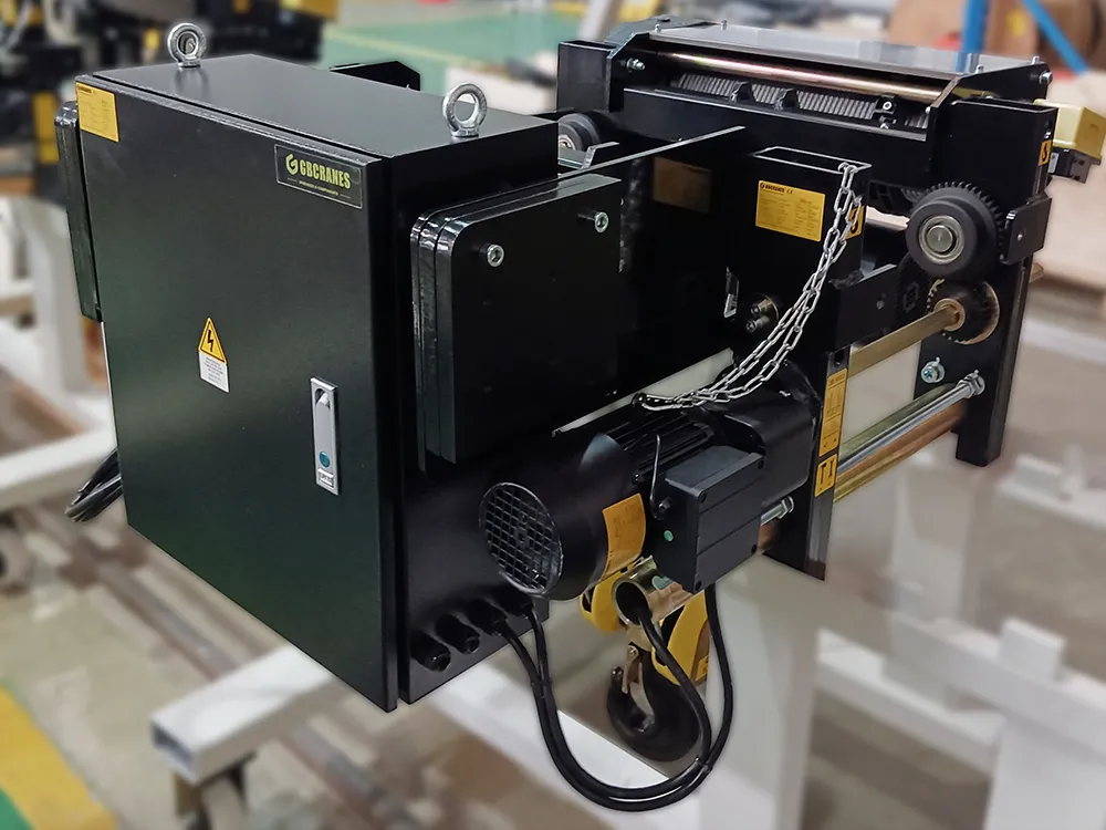 Según sus necesidades, podemos ofrecer numerosas características opcionales, como mayor altura de elevación, diferentes velocidades de elevación, adaptación a diferentes tipos de vigas, gancho personalizado, sistema antibalanceo, doble freno, indicador de carga, etc.