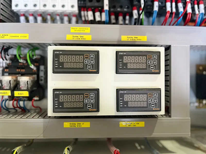 7. Limitador de sobrecarga, limitador de altura, limitador de carrera, limitador fotoeléctrico y otras medidas de seguridad, disponibles según las diferentes condiciones de trabajo. Se puede añadir una caja negra de grúa con funciones de análisis grabadas según las necesidades del cliente.
