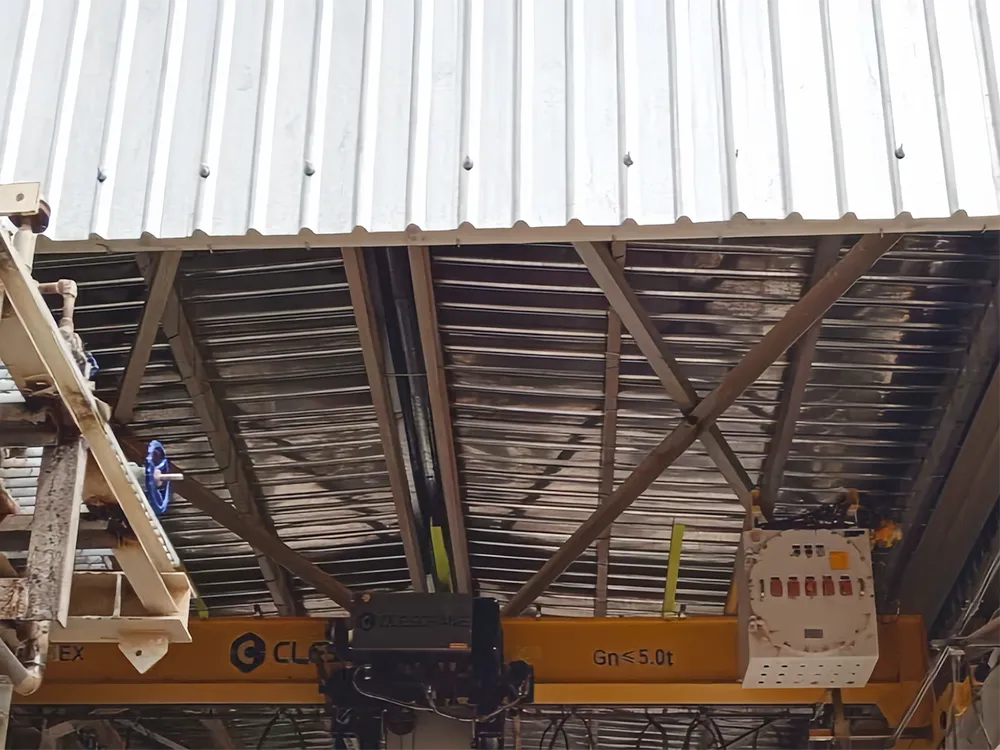 Para cumplir con los estrictos requisitos de protección contra explosiones del proyecto, todos los motores de elevación y desplazamiento suministrados por CLESCRANE están equipados con motores antideflagrantes de Euromotori (Italia), y los frenos son de COEL (Italia), lo que garantiza una excelente seguridad y estabilidad. Debido a las limitaciones de espacio del sitio, optimizamos el diseño de las vigas principales aumentando la altura en 400 mm para maximizar el espacio libre y mejorar la comodidad operativa del cliente.