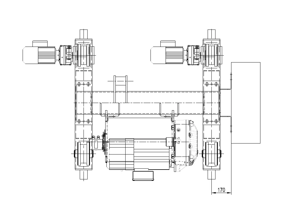 Teniendo en cuenta las limitaciones de espacio en la planta, el equipo fue especialmente diseñado con un sistema de accionamiento del carro en la misma dirección, y la caja eléctrica se ubicó a 170 mm del extremo del polipasto, cumpliendo perfectamente con los requisitos del cliente.
